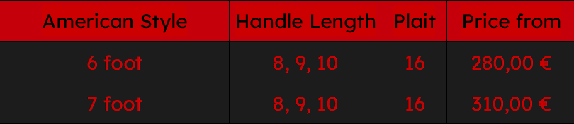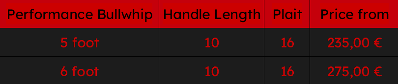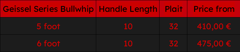Die Preisliste beinhaltet nur den Peitschenkörper, der Preis des Griffes kommt noch dazu!